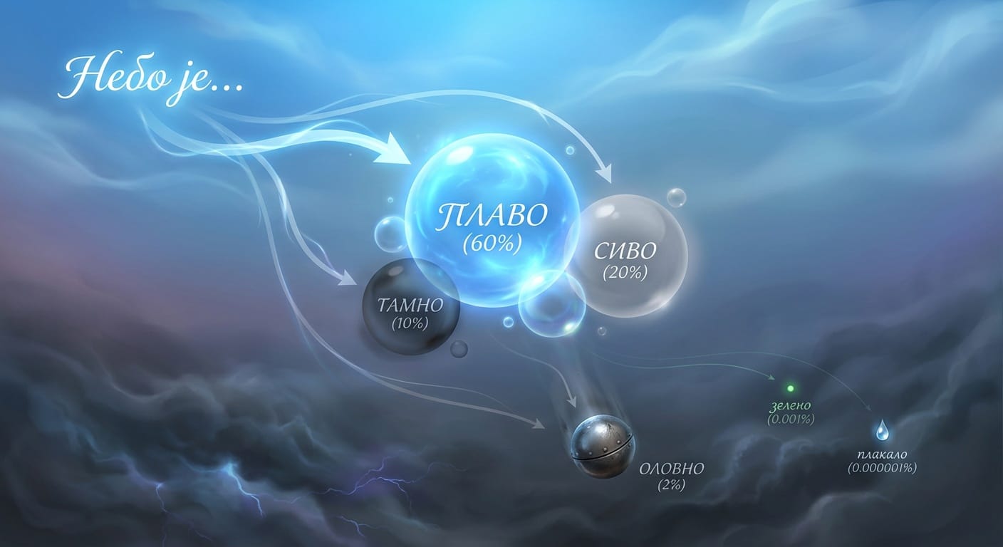 Реч „плаво”, са својих шездесет пет процената, и даље заузима далеко највећи удео у тој расподели, али „облачно” са двадесет процената остаје озбиљан кандидат, а чак и „зелено”, са својом маргиналном шансом, опстаје као теоријска могућност - и понекад, у ретким али не занемарљивим случајевима, управо та маргинална могућност буде реализована.